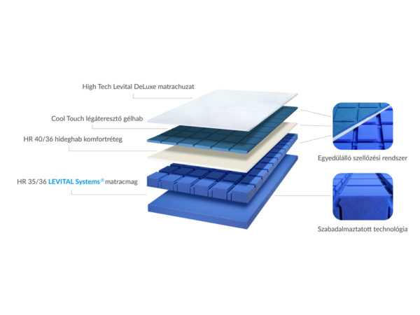 A Levital Perfect Contour matrac hűsítő gélhabbal a komfortrétegben. Az USA-ban és az Európai Unióban is szabadalmaztatott Levital System eljárással készülő Perfect Contour matrac a Levital termékcsalád viszkoelasztikus változata és minden olyan tudást technikai megoldást és előnyt magában rejt amit csak a 21. század technológiája lehetővé tesz. Sőt! A speciális Adaptive Cutting System vágási technológiának és az éveken át tartó kísérletek eredményeként megalkotott Levital System matrac minden olyan problémát megold, amellyel csak a matracgyártók és a Vásárlók az elmúlt évtizedekben találkozhattak.